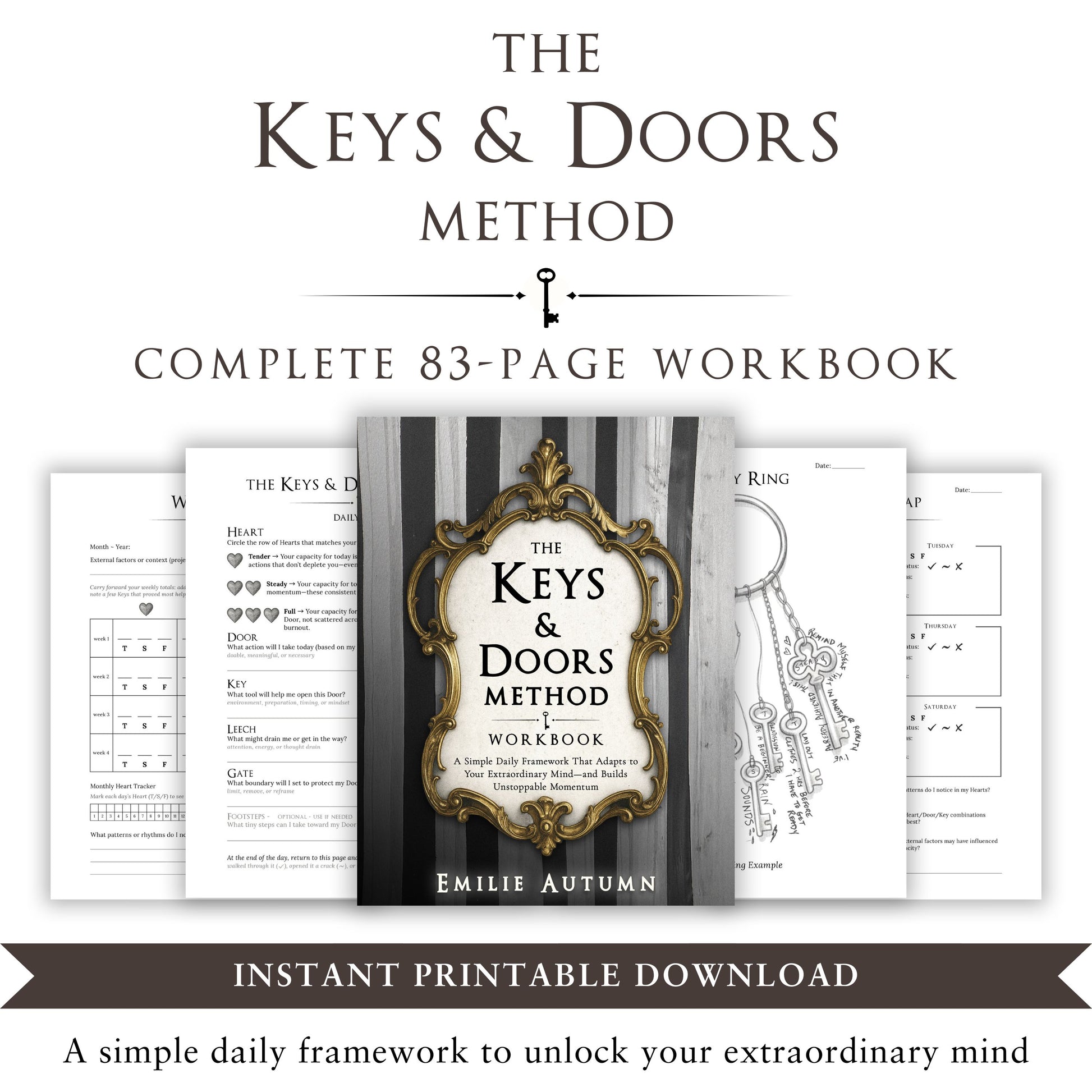Created by Emilie Autumn to manage bipolar disorder, PTSD, and chronic autoimmune disease, the Keys & Doors Method is the first variable capacity mental wellness framework—a strategic system that matches your actions to your actual strengths each day, transforming changing energy into momentum, self-trust, and resilience.